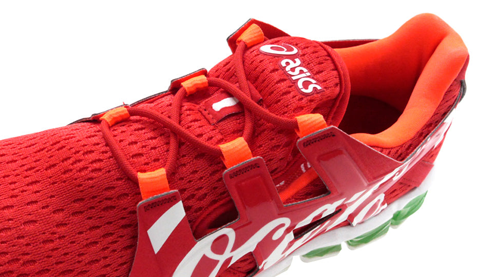 世界有数の飲料メーカー「コカ・コーラ」と<アシックス>が共同企画したゲルクォンタム 90がベースのコラボレート作。