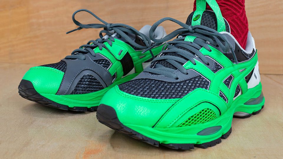 "RETRO FUTURISM"をコンセプトに掲げる本作は、シューレースと連動した内側中足部のストラップ構造が特徴的な1995年発表のゲルエムシープラスのアッパーに、2015年に発表されたゲルキュムラス 17のツーリングを組み合わせたハイブリッドスタイル。