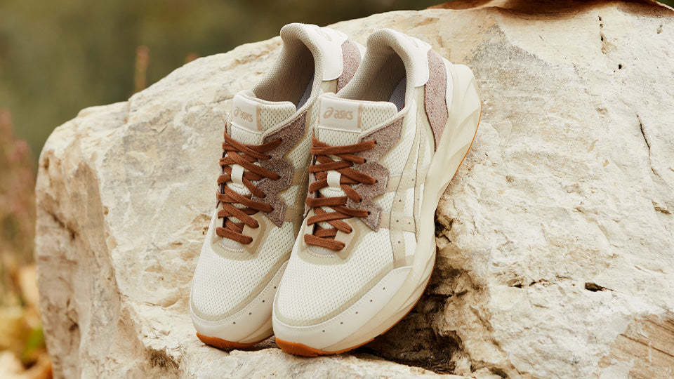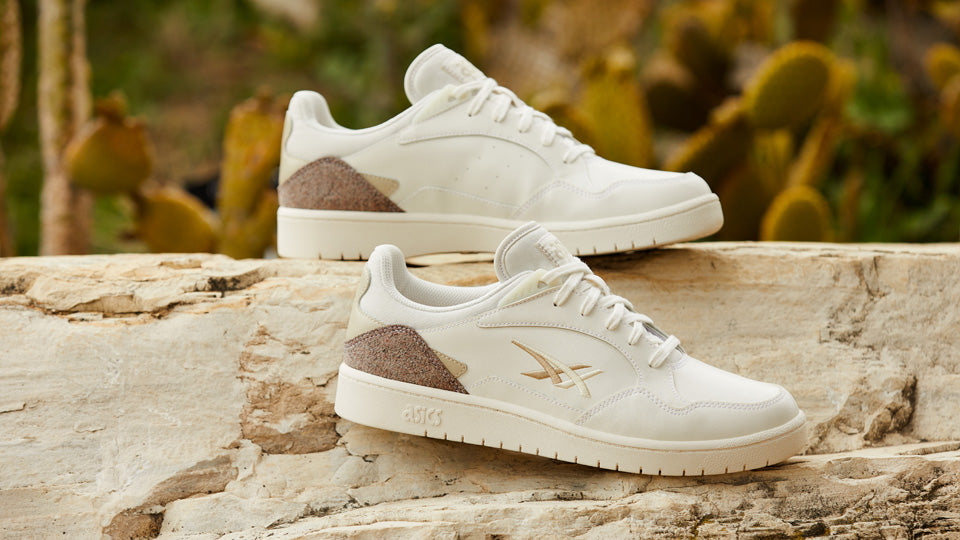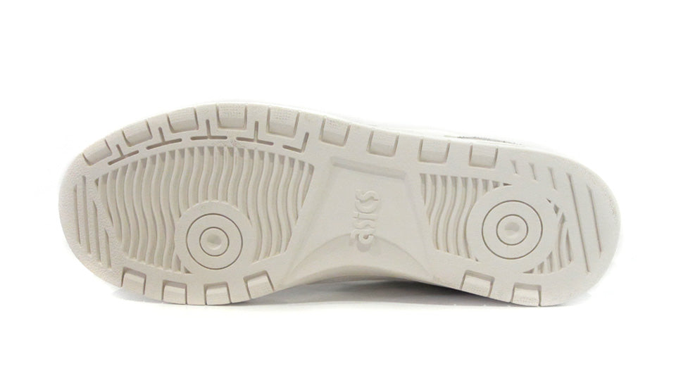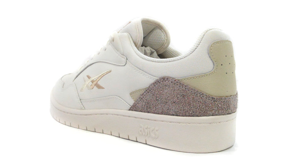 ジャパン エスが装着するツーリングに1990年に登場したバレーボールシューズのゲルアルティチュードからインスピレーションを得たアッパーを組み合わせ、ミニマルなアシックスストライプがデザインの特徴となったコートスタイルシューズ。