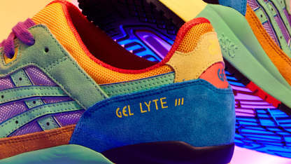 踵部分にアイコニックな衝撃緩衝材「GEL」を組み込むことによりクッション性を向上させ、フィット感を飛躍的に高めるシュータンを縦に大きく2分割した独自の「スプリットタン」構造が特徴となったプロダクト。