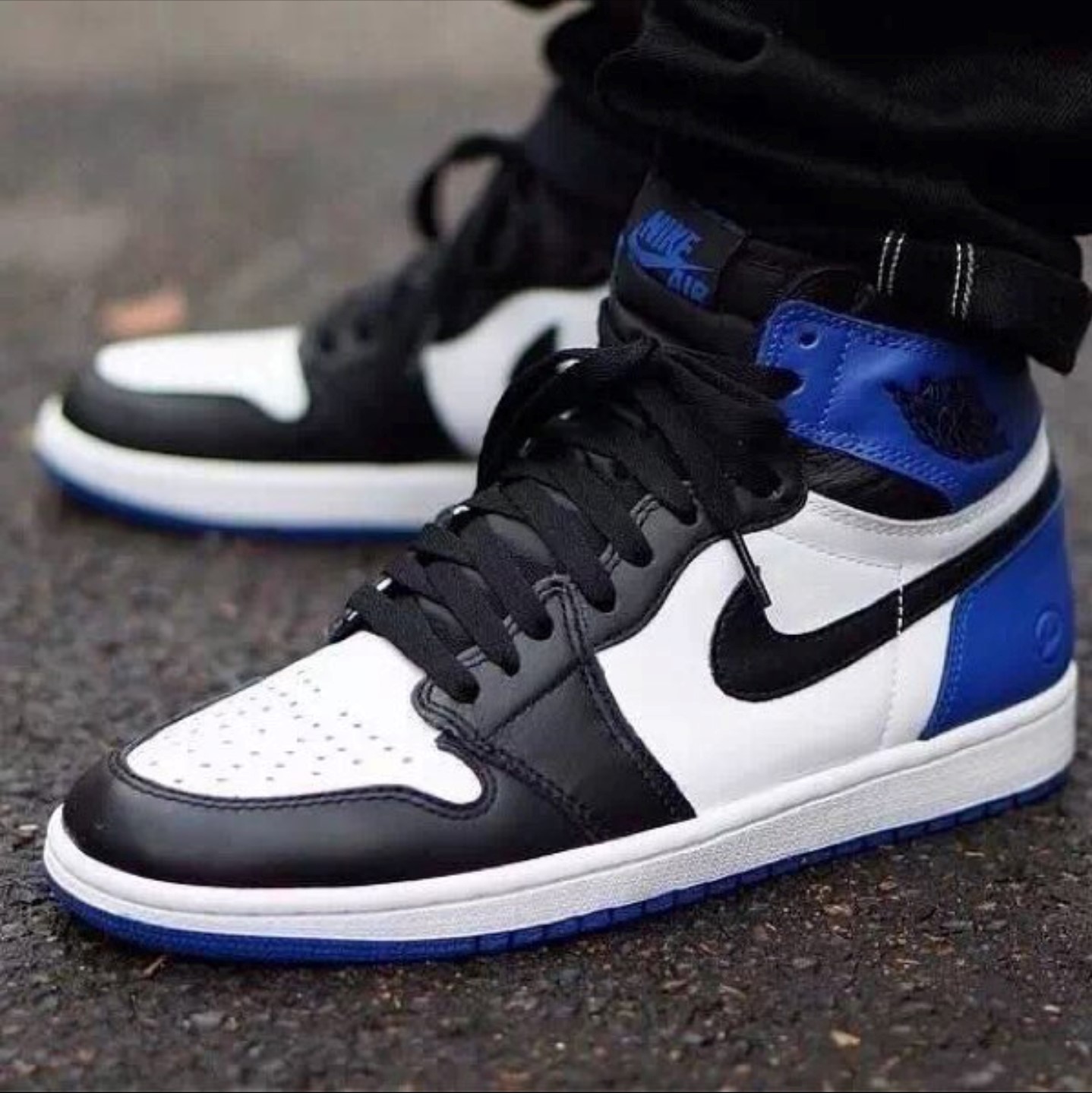 Fragment Design x Jordan Air Jordan 1 Retro High 藤原ヒロシ ビッグライトニング レザー 滑り止め 軽量 ハイトップ レトロ バスケットボール シューズ 黒と白 ブルー