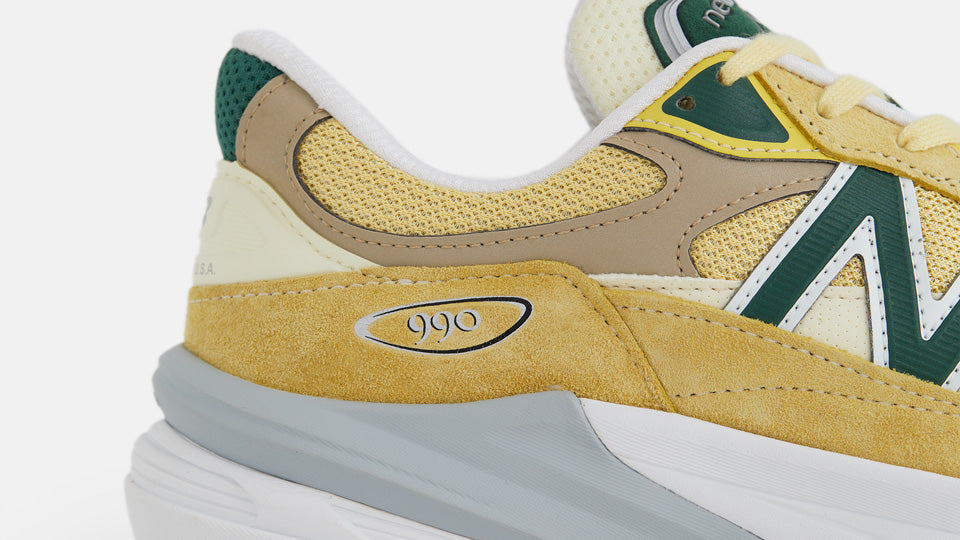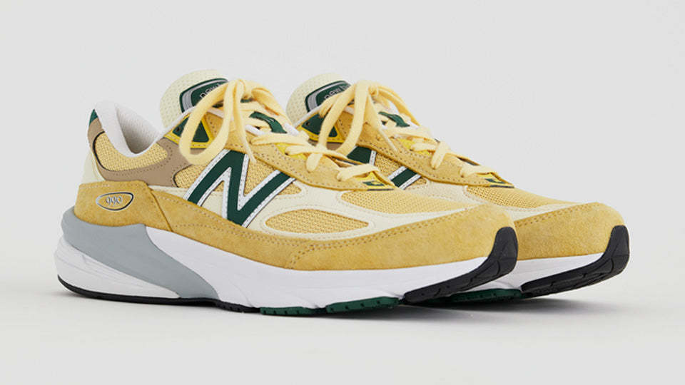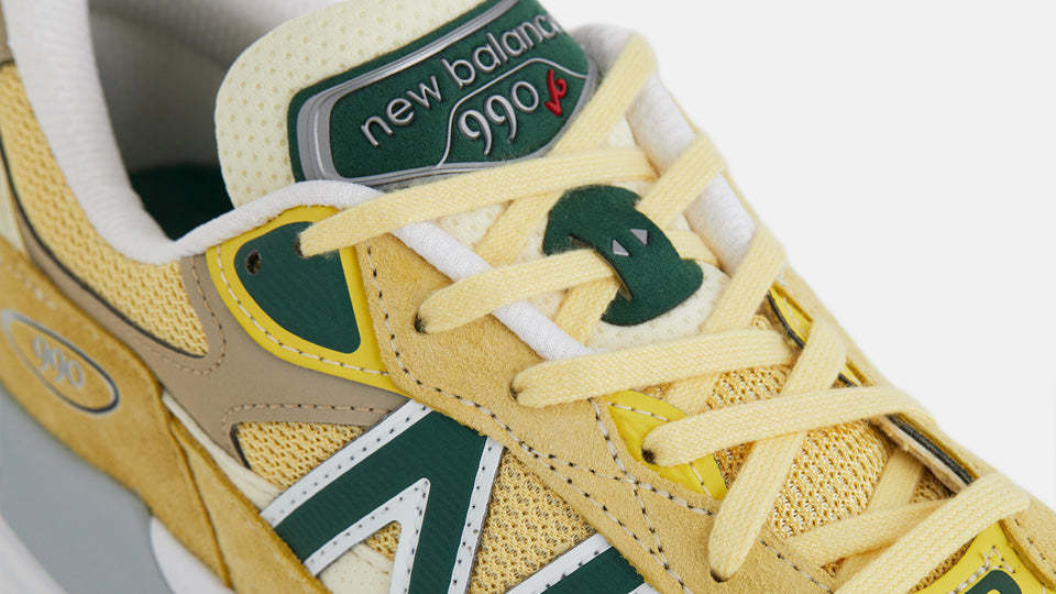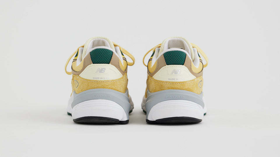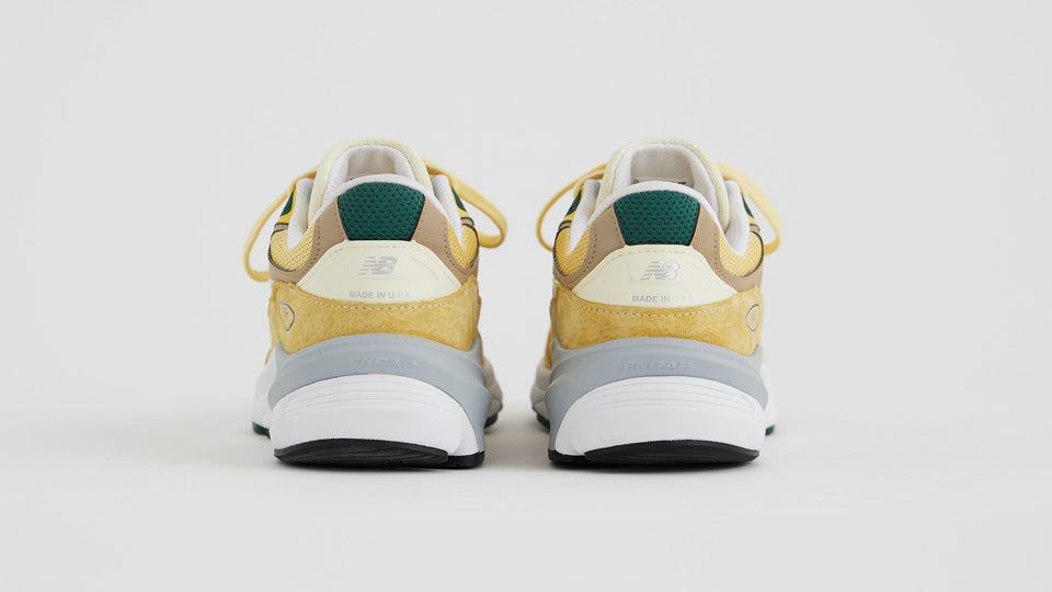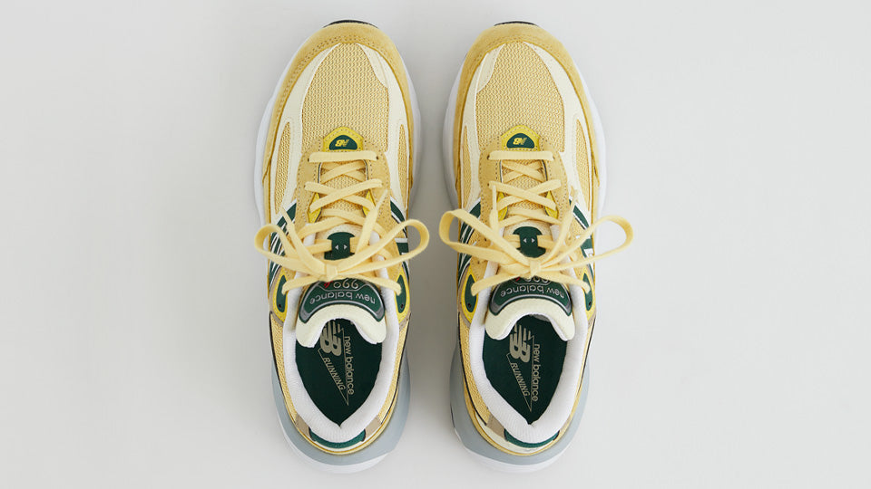 本作は、上質なピッグスキンスエードとナイロンメッシュで構成したアッパーをペールイエローで彩り、グリーンのアクセントでフレッシュな表情に仕上げたUSA製のリミテッドエディション。
